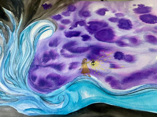 to see a little girl holding a lantern in this mysterious watery world. A girl like my younger self - I was holding the lantern. Suddenly, I could hear my creative wisdom speaking to me as if to say, "see, it is just right. Just keep following the impulses that arise." Something was moving through me and I just needed to stay with it. I felt reassured, more confident, and a shift take place within.