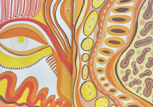 I see you. bold and beautiful. You are a treasure. Imagine your own wisdom coming out of nowhere. It is always moving, like a stream, and you can create a breeze using your arts practice to make it visible. Try tuning into it by making marks or moving your body - just listen closely and you will feel it begin to move in the breeze.