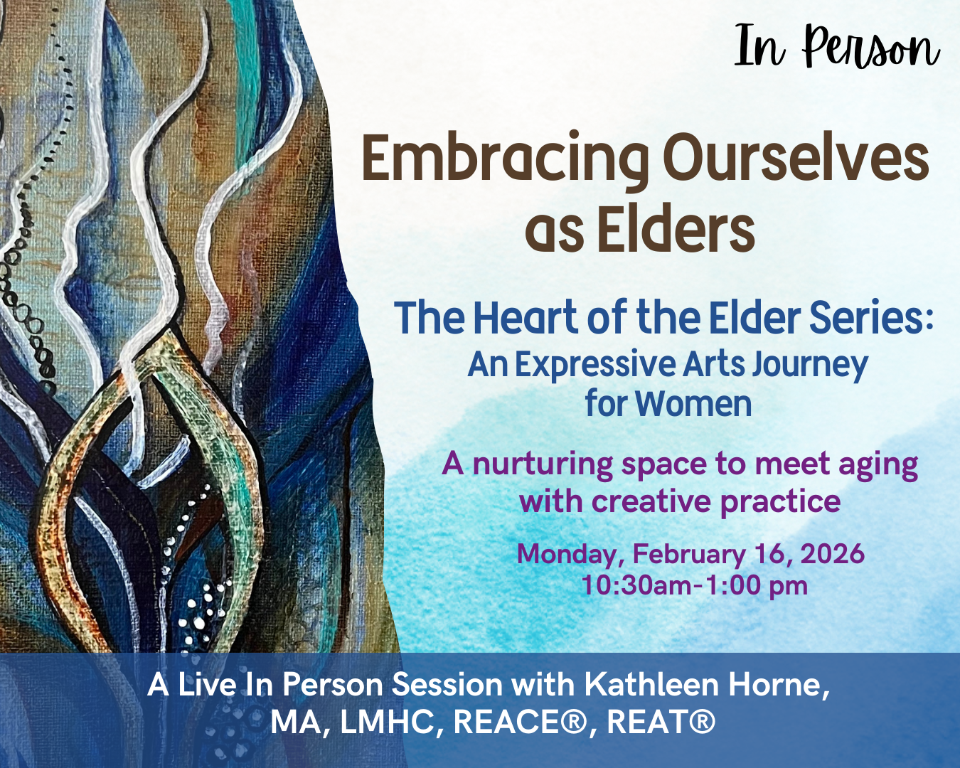 Are you longing for a meaningful, creative way to meet the journey of aging? Do you sense a deeper wisdom emerging within you — and want a space to explore it? Join Kathleen for the first in person Heart of the Elder workshop! Learn more here